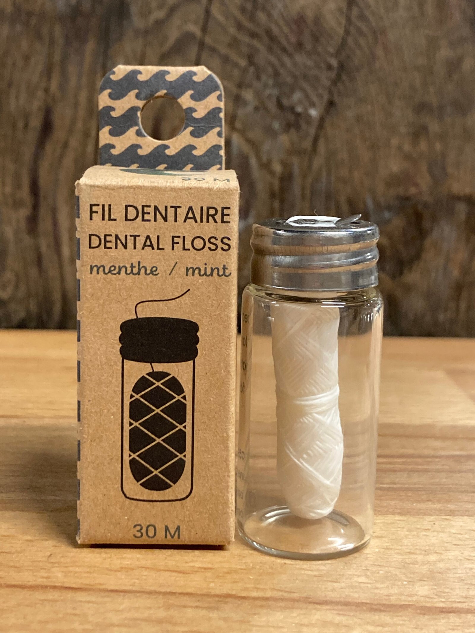 Notre fil dentaire biodégradable en fibre de maïs, cire de candelilla, saveur menthe, apporte la solution parfaite pour nettoyer vos dents.