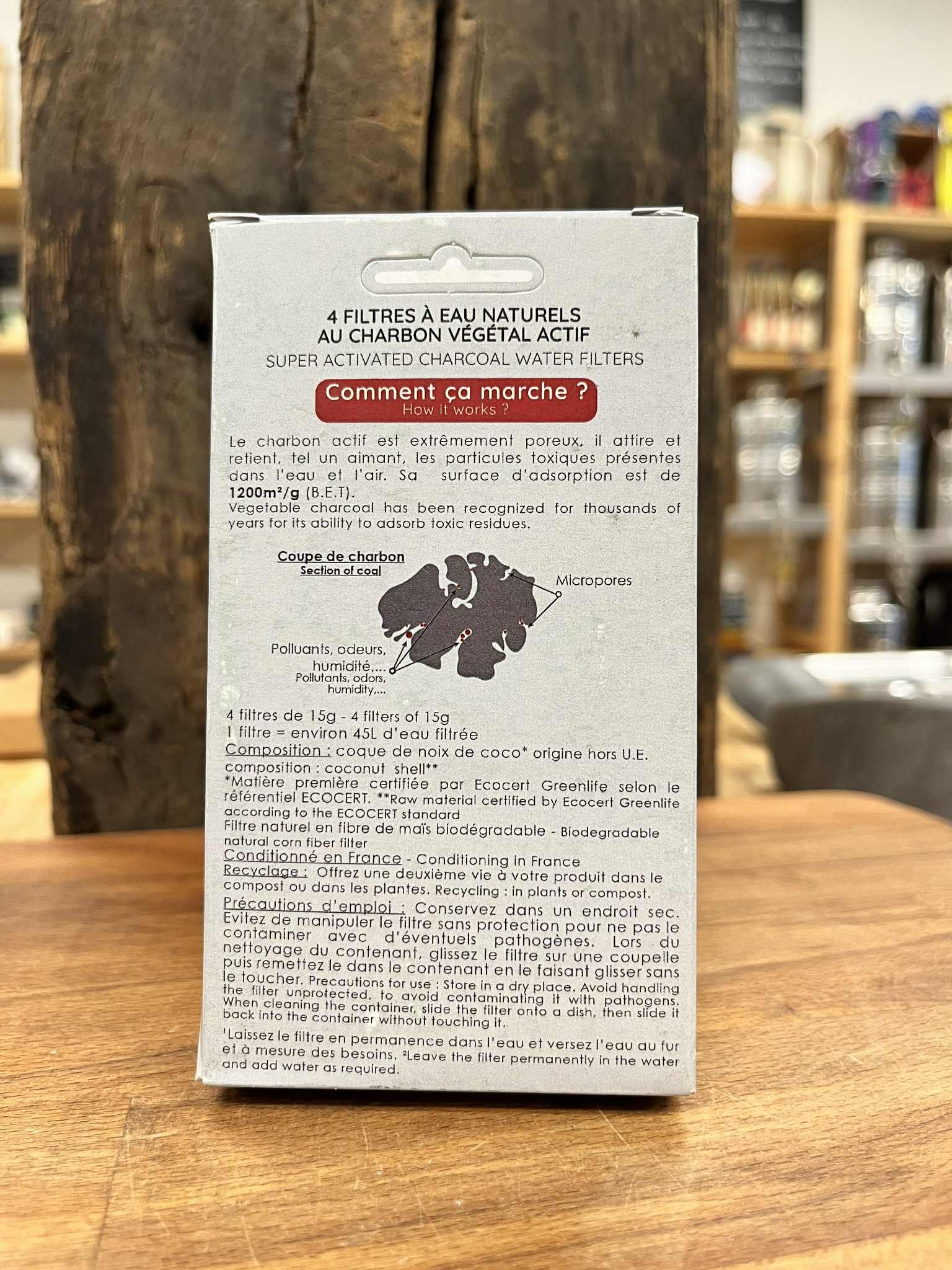 boîte de 4 filtres à gourde de charbon actif végétal