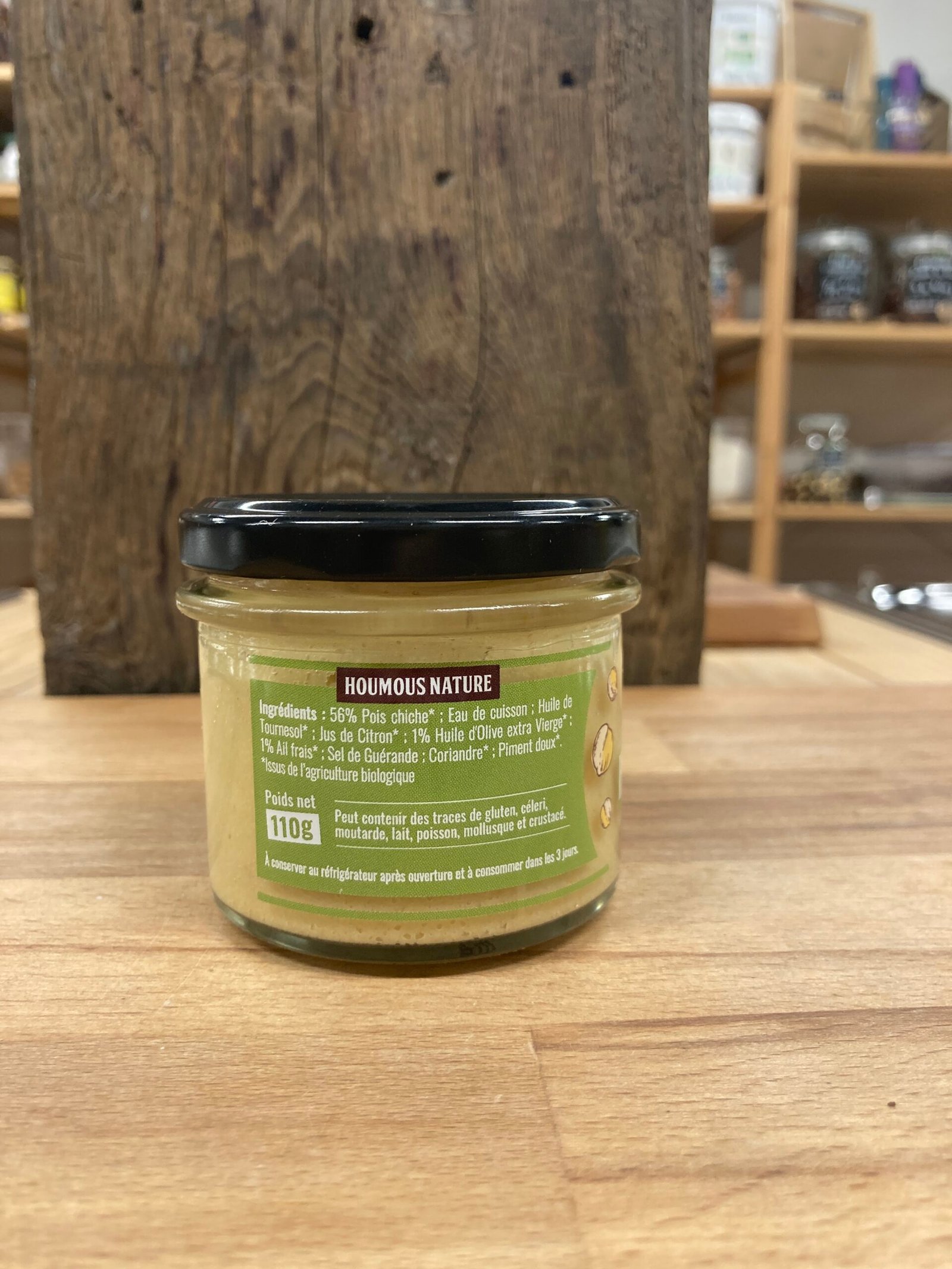 Pois chiche* ; Eau ; Huile de Tournesol* ; Jus de Citron* ; Huile d'Olive extra vierge* ; Ail frais* ; Sel ; Coriandre* ; Piment doux*