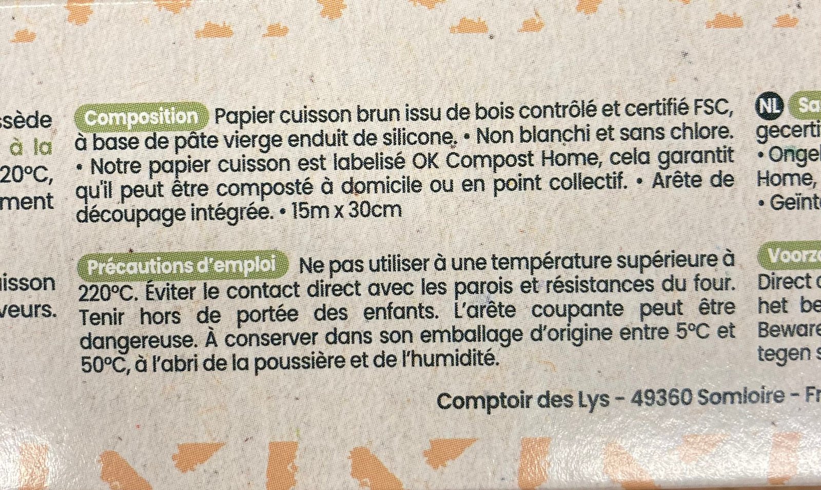 Ce papier cuisson écologique est non blanchi et sans chlore. Idéal pour les pâtisseries et la cuisine.