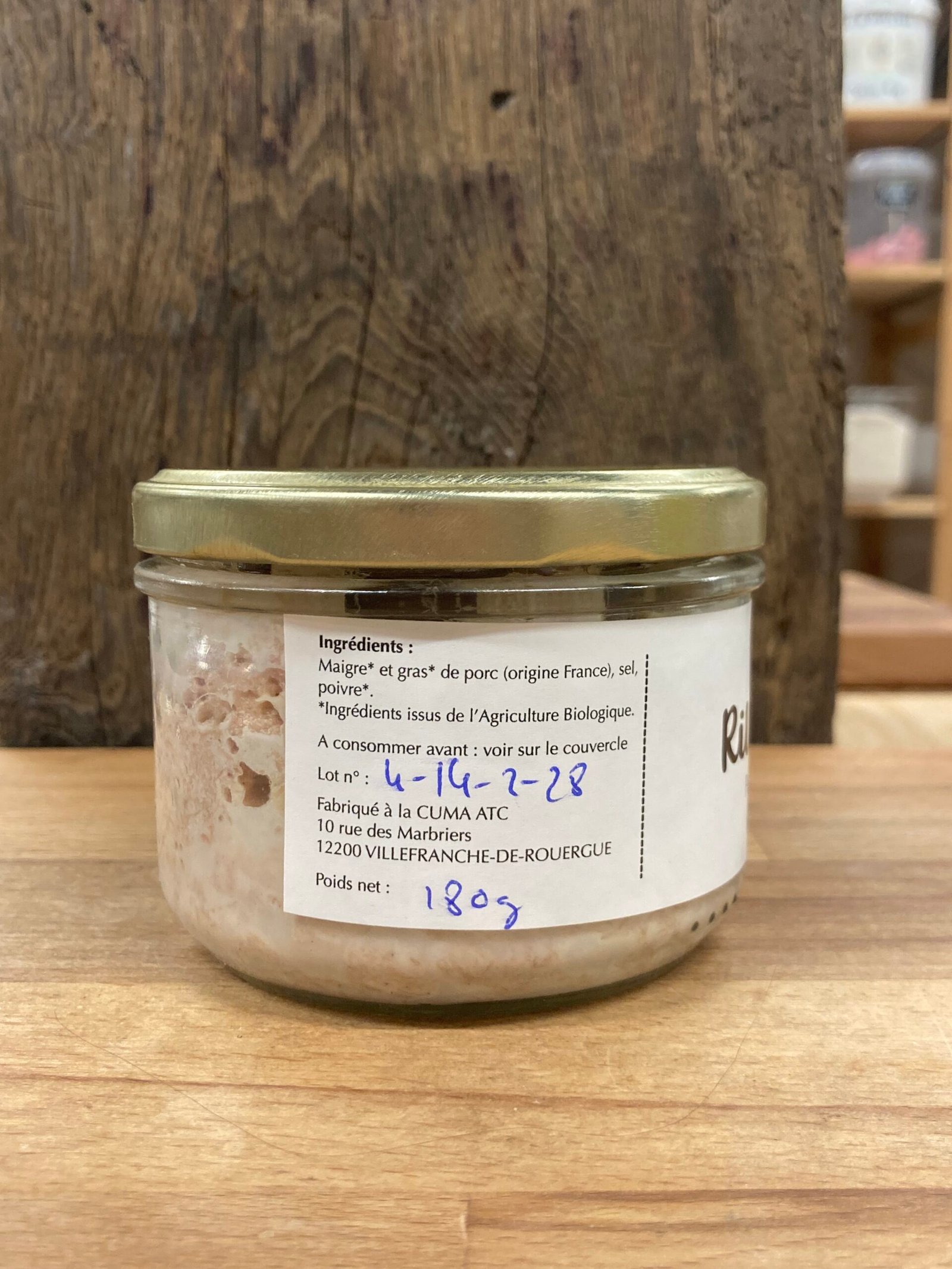 | Ingrédients | Maigre* et gras* de porc (origine France), sel, poivre* |